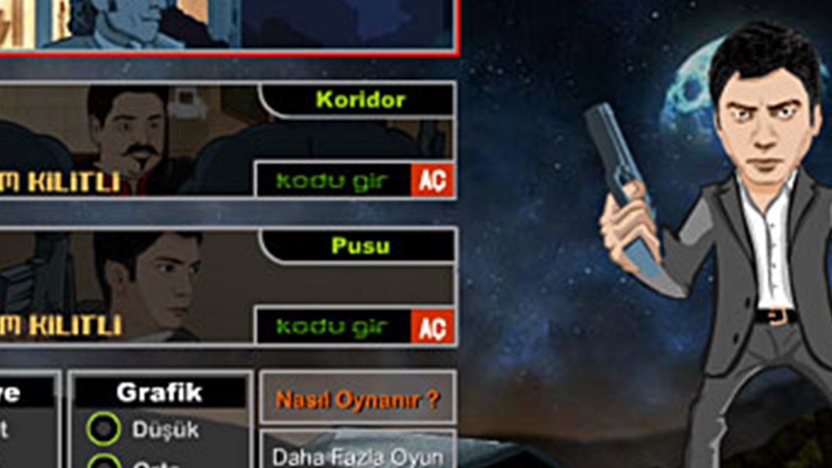 Oyunda Polatın Çengelköydeki ofisine baskın yapılmaktadır ordan canlı bir şekilde kurtulmalısın. Aynı şekilde her bölüm bittikten sonra kodu bir sonraki bölüm için kullanın. Aşağı eğilip gizlenmek için fareyi aşağı indirin.